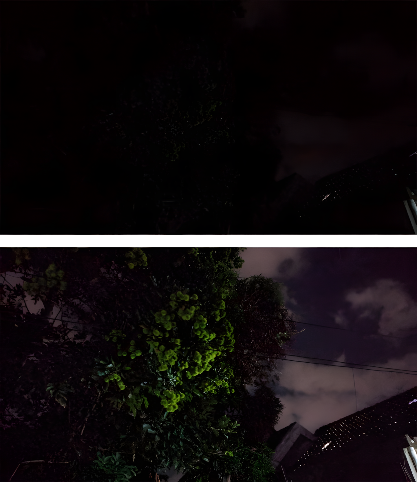 Perhatian: Saat artikel ini di-update (Mei 2021) Apple mulai dari iPhone 11 telah menghadirkan fitur serupa dengan nama Night Mode. Selain hampir semua produsen ponsel Android telah menyematkan fitur serupa di ponsel keluaran terbaru. Sehingga hasil yang didapat tidak jauh berbeda.